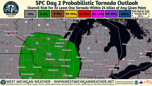 A more appreciable threat for heavy rainfall/flooding and another low chance for a couple of strong to severe storms will exist Thursday evening and into Friday as a better-forcing mechanism to spark shower and storm development moves through the region. With regard to the severe weather threat, it currently looks like the best environment, and therefore the best severe storm chances will remain to the South of the MI/IN/OH border but we can't rule out an isolated strong to severe storm here in lower Michigan especially along and south of the I-96 corridor and West of the US-127 corridor.
