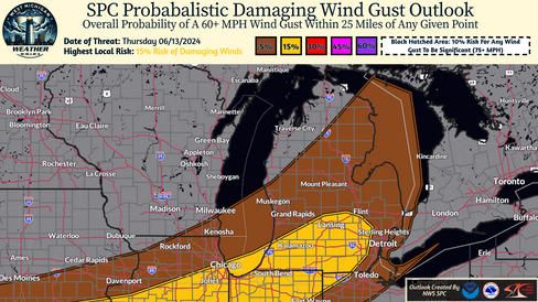 This more favorable environment will likely be supportive of all severe weather hazards, with the most likely threats being small to large hail up to 1.50 inches in diameter and damaging wind gusts of 60-70 MPH. An isolated tornado or two can also not be ruled out, especially in areas that experience any localized interactions with lake breezes from Lake Michigan.